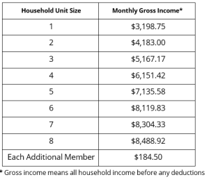 - Income Guidelines: Household income must be at or below 60% of Area Median Income (AMI) by household (Please see income chart below.)