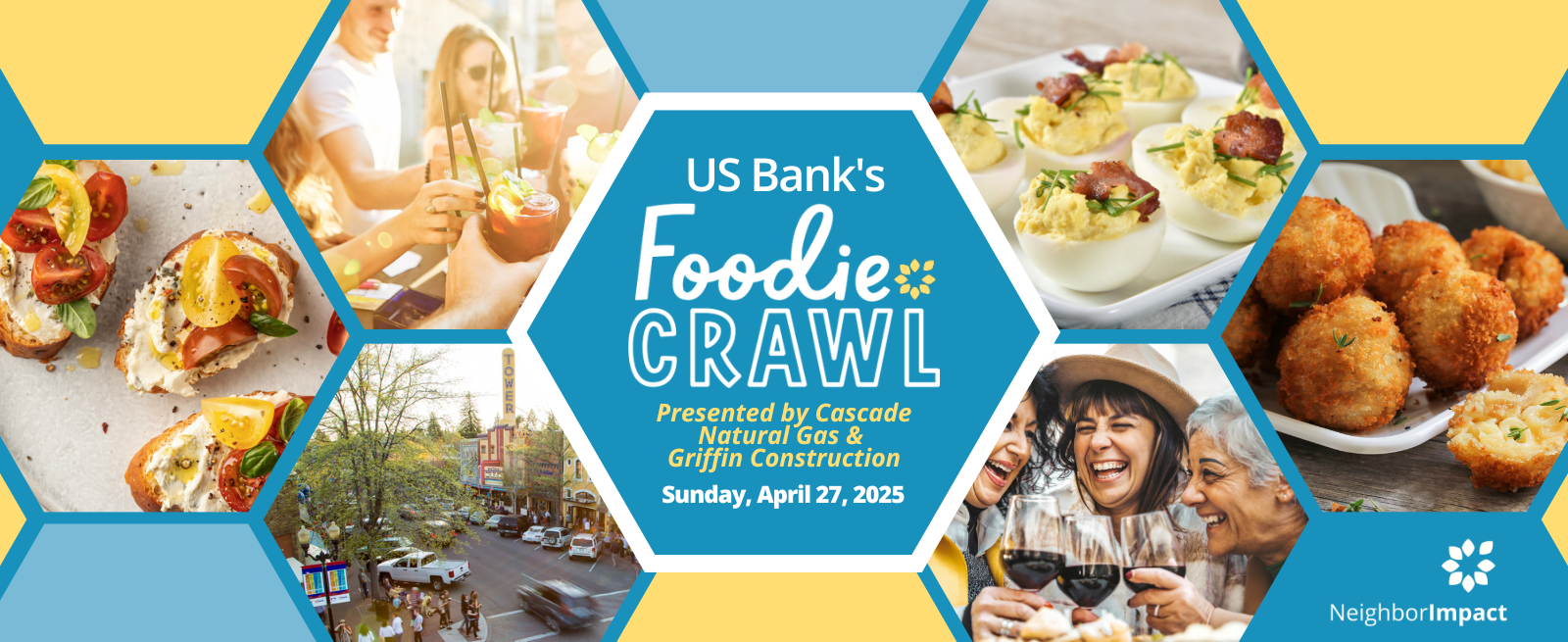 US Bank’s Foodie Crawl, fundraiser for NeighborImpact, will take place on Sunday, April 27th, 2025, from 2 – 4 p.m. Join us for this popular annual pub-crawl-meets-progressive-dinner event. At this celebration of local food and drink, guests sample small plates and beverage pairings from a select group of chefs and restaurants in downtown Bend, all for a good cause.