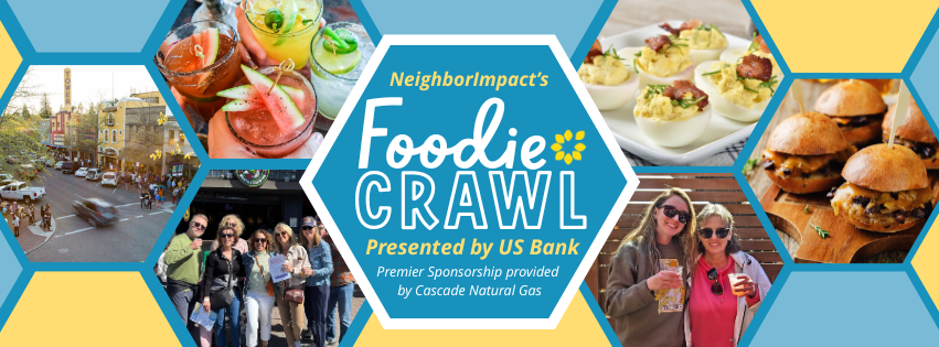 NeighborImpact’s Foodie Crawl, presented by US Bank, will take place on Sunday, April 26th, 2026, from 2 – 4 p.m. Join us for this popular annual pub-crawl-meets-progressive-dinner event. At this celebration of local food and drink, guests sample small plates and beverage pairings from a select group of chefs and restaurants in downtown Bend, all for a good cause.
